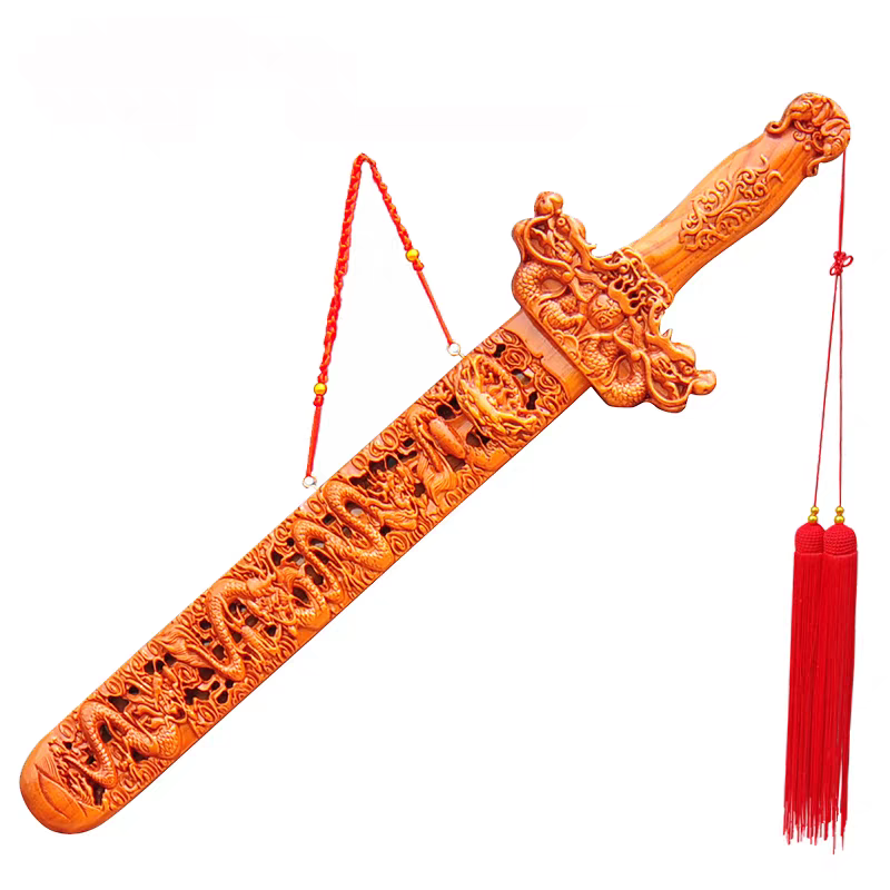 精雕細琢: 採用純手工雕刻技藝,紋理清晰自然,每一把劍都是道法加持的藝術品,不僅具有實用價值,更兼具觀賞與收藏價值。